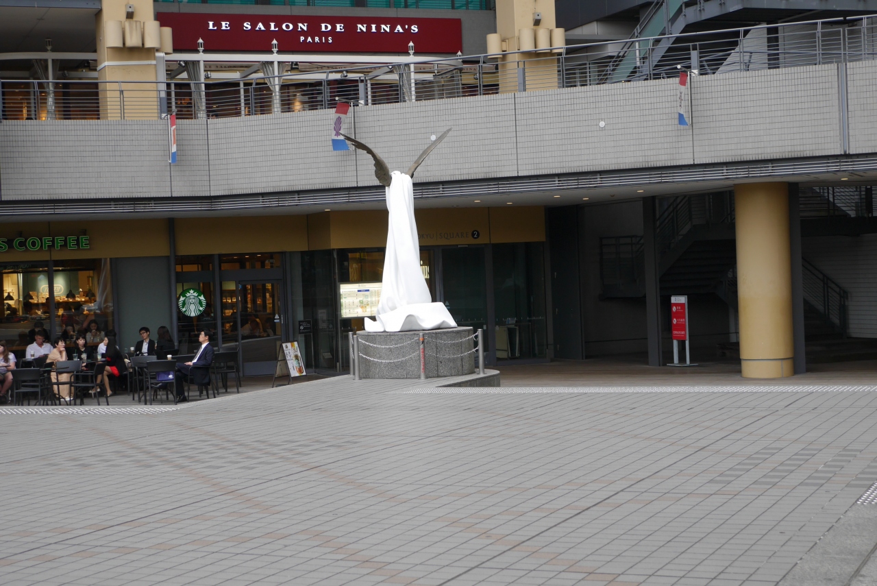 コスモクロック21が正面に見え、周辺にはスタバやマックがあり天気の良い日には屋外の良い休憩所になります。