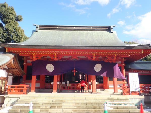 楼門をくぐって進んだ先にある拝殿も美しい朱塗りの建物でした。