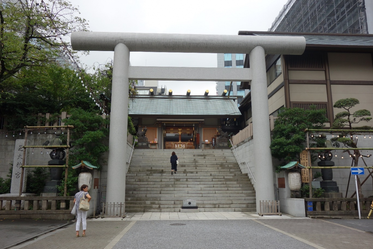 浜松町駅の周辺や増上寺界隈を散策していた時こちらのお寺へ立ち寄りました。離れた場所から立派な鳥居が見えてとても目立っていました。鳥居の向こうは急な石段で、それを上がってやっと拝殿へたどり着きます。増上寺の周りはお寺が多くてそれぞれ特徴が有って見ごたえありました。