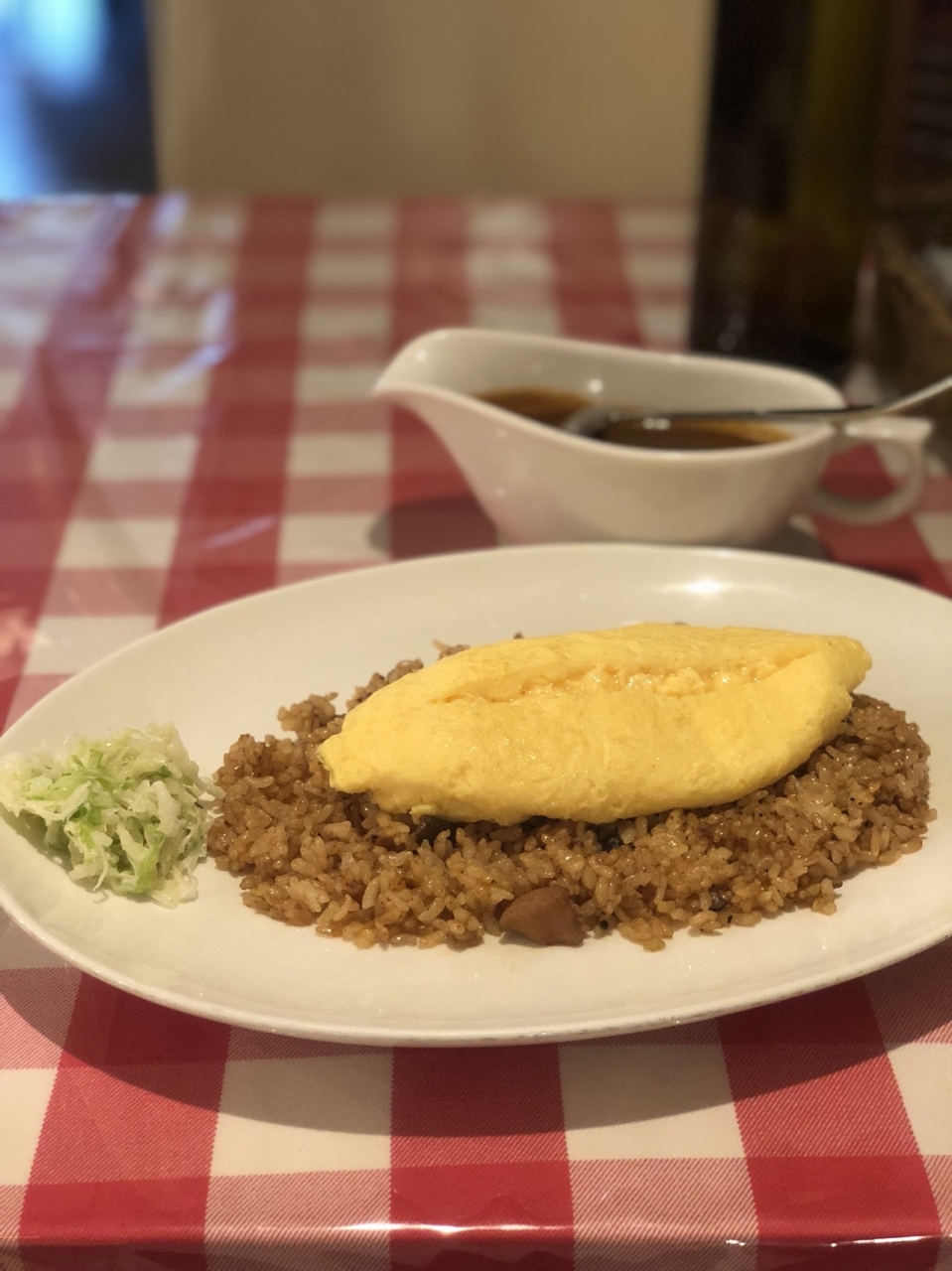 カレーがメインのメニュー構成。有名なオムレツが乗ったカレーをセレクト。