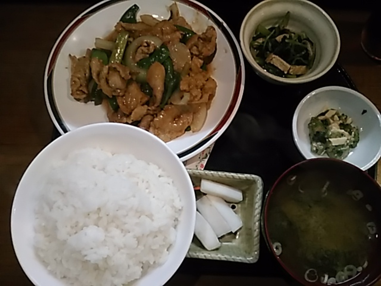仙台市の本町、定禅寺通りと国道45号線の間の小路にあります。カウンター6席、テーブル14席位です。ランチは刺身定食、焼魚定食、日替わり?、豚しょうが焼き定食です。日替わり?の豚肉といんげんの炒め定食は、以前、店の前を通った時はレバニラでした。刺身が一番人気のようです。今回は、日替わり?の豚肉といんげん炒め定食700円をいただきました。豚肉とモロッコいんげん、二つの組み合わせは絶妙で、良い味でした。お浸しもほっとする、焼き魚いい味です。ご飯大盛り無料です。入店前の行列の意味、分かりました。