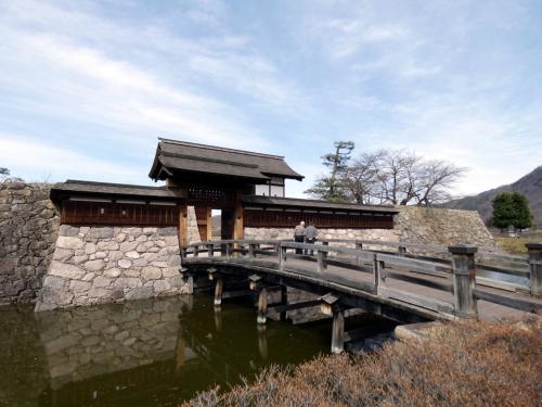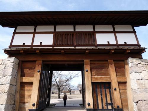 廃城後、一度畑になりましたが、太鼓門、堀、石垣、土塁などが復元され日本100名城に選ばれていて、無料で開放されています。