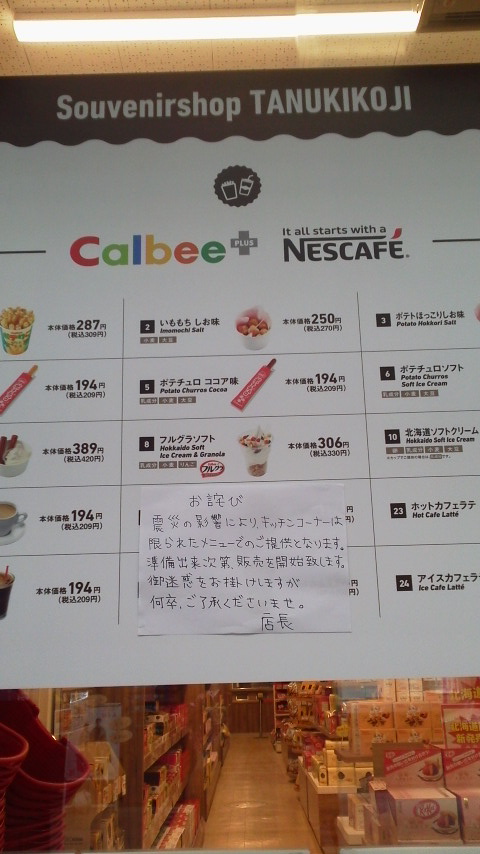 地震の影響でキッチンの方が普段通りに提供できないそうです。