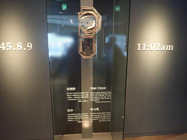 長崎に原爆が投下された11時2分(1945年8月9日)に止まったままの時計が展示されています。