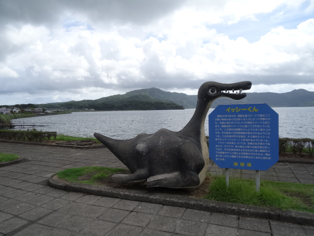 枕崎ドライブの途中寄ってみました。10年前に来た時には、湖のすぐわきに大ウナギの水槽が並んでいたと思うのですが、それらしきものは無く。イッシーの観光案内のみ。平日の朝だったので駐車場は、がらがら。お土産屋さんで大ウナギを見ることができるようです。