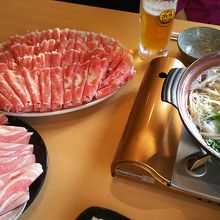 今回は、ラム肉と豚肉のしゃぶしゃぶコースの飲み放題を注文。
