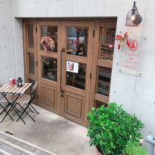 商店が立ち並ぶ通りにありこちらはちょっと道路から階段で降りる形で建っている。