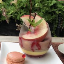 スープ仕立ての桃はとても美味しくマカロンも付いてきたが割高感の残る印象。