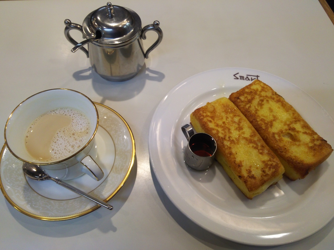 知人オススメのフレンチトーストと、カフェオレを注文。