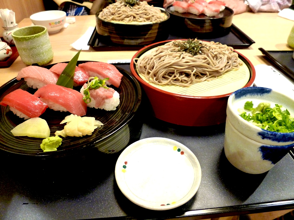 マグロフェアをやっていたので幼児からシニアまで全員まぐろとざるそばのセットを注文しました。おいしかったです。一般の地域店舗とは違い狭い店内ですが、スタッフの客さばきもてきぱきと気分よく食事できました。