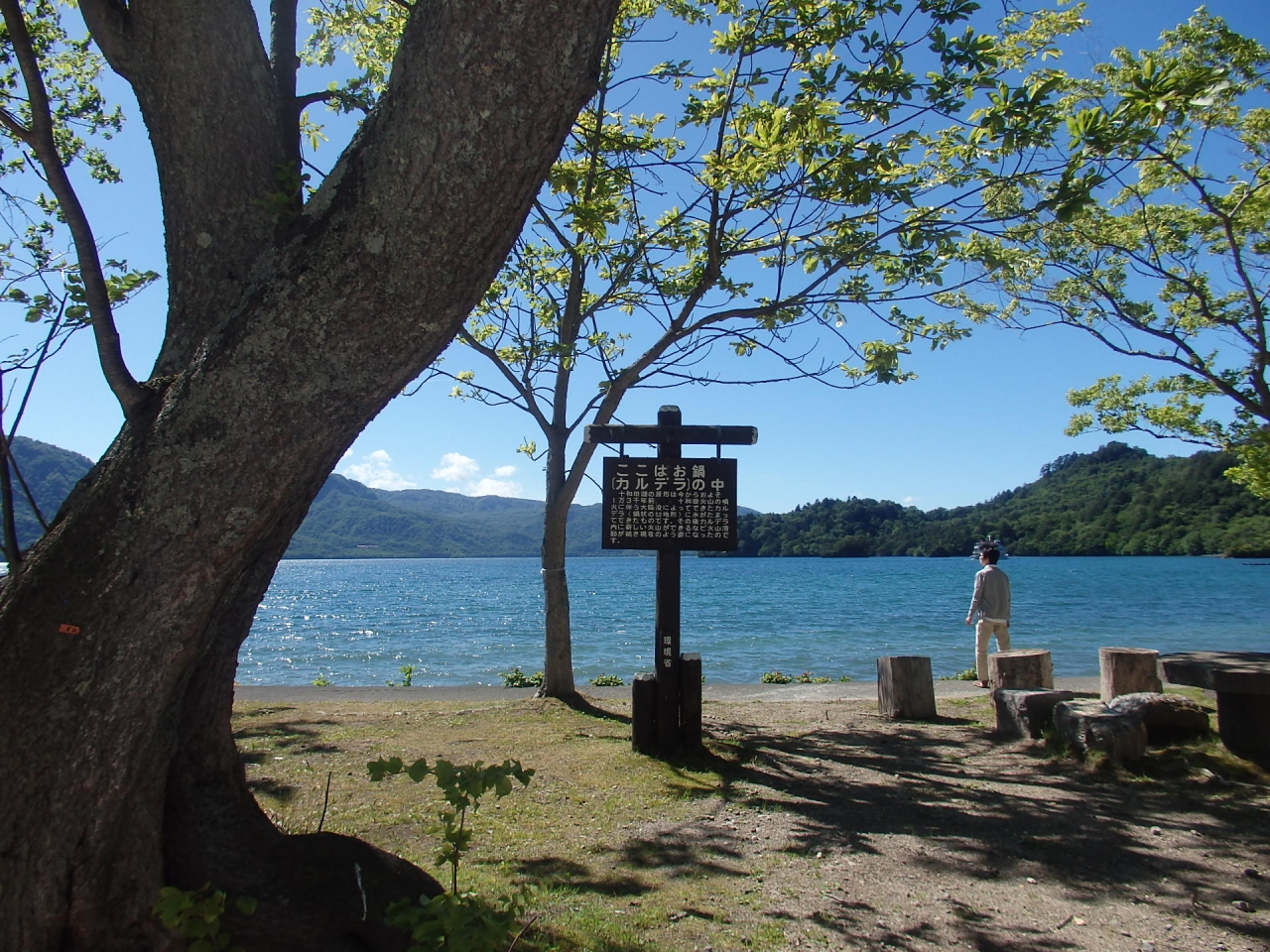 十和田湖は八甲田山の噴火で形成されたカルデラ湖です。唯一の流出河川奥入瀬川が太平洋に流れ出ており、奥入瀬渓流として散策コースになっています。遠くに見える山々を背景にした青空の下の十和田湖は絶景です。また十和田湖バス停そばには砂浜の御前ケ浜、乙女の像、十和田神社、十和田ビジターセンター等多くの見物するところがあり、散策すれば十分満足できるスポットです
