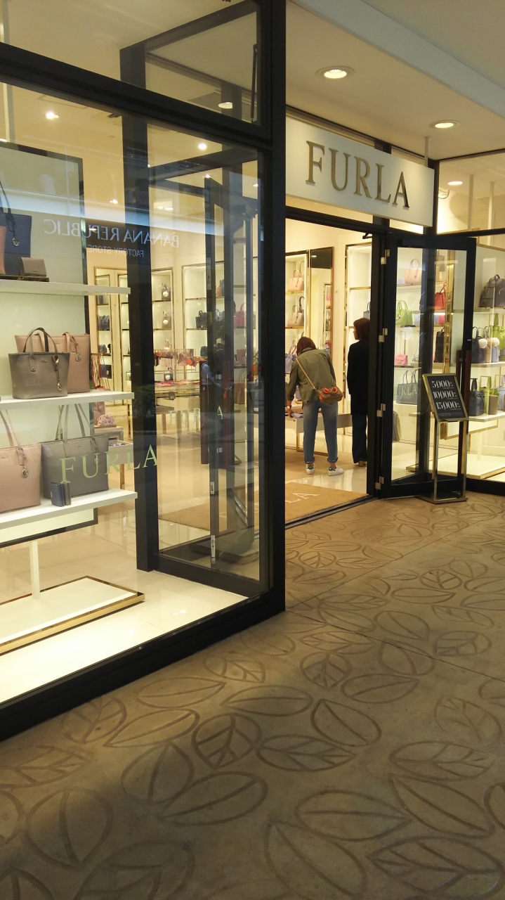 上品なカラーリングのバッグが色とりどり陳列されており、ロゴが控えめなのが大人っぽく、さりげなく主張します。