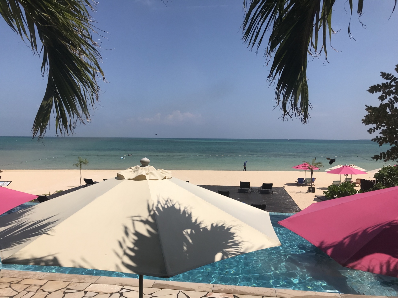 滞在中、別の日にビーチへ行こうとして平田観光のプランを見ていると「憧れのビーチリゾート」というプランがあり、これも利用してニラカナイ小浜島のホテルビーチへ行きました。往復の船賃とバス、ホテルビーチでの食事とドリンク、ビーチベットなどが付いて¥5800とおトクでした。ラッシュガードやシューズ、シュノーケルセットまで無料でレンタルでき、ほぼプライベートビーチなので空いていました。石垣島のビーチへ行こうとプランニングしましたが、色々含めると高くなるのでこのプランにして大正解でした。