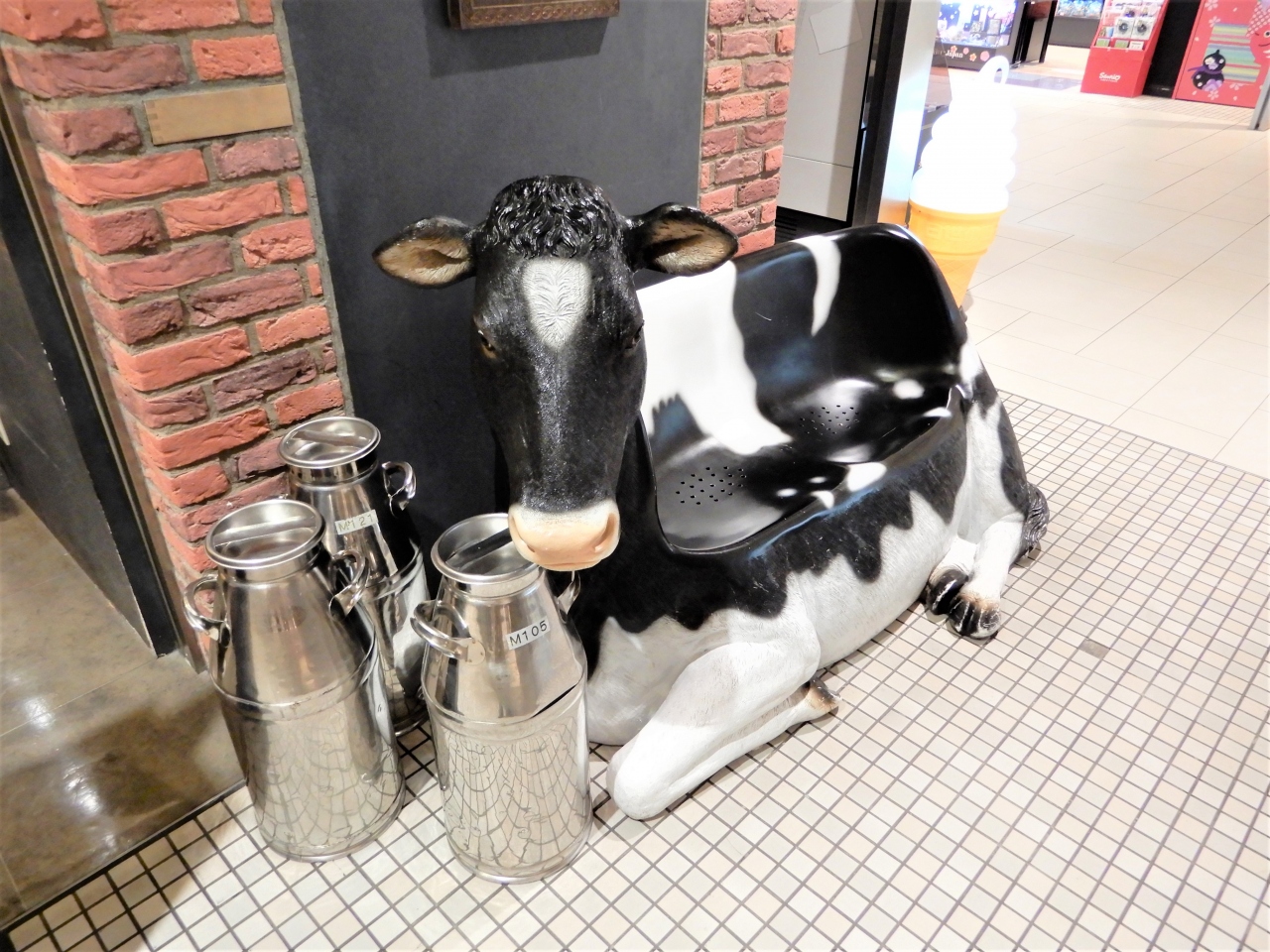 乳牛のベンチがあって、ミルクタンクも置いてあって面白いです。