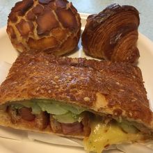 栗と大納言(250円)、豚トロとバジルポテトのカルツォーネ(240円)、クロワッサン(200円)を購入。