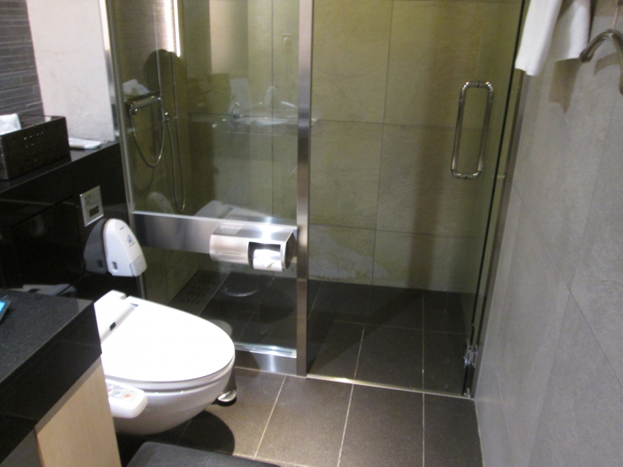 仕事帰りに家に帰り、着替えてすぐに夕食を食べずに羽田空港に向かいました。ラウンジで遅めの夕食をいただき、その後、バスタブはありませんがシャワーで1日の汚れを落とすと何となく疲れが取れた気分になりました。さっぱりとして夜のフライトに搭乗することができました。