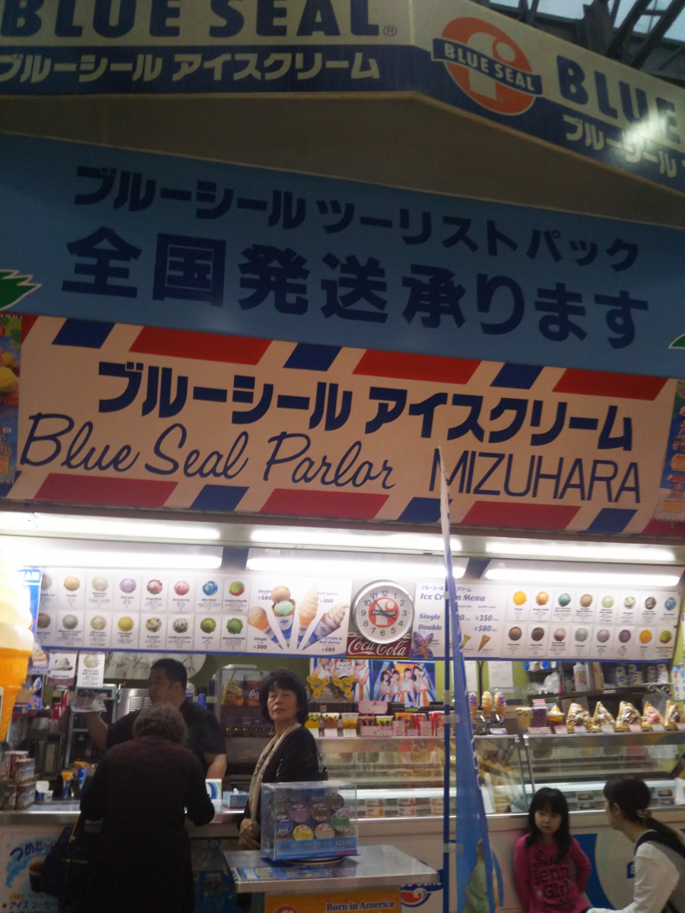 沖縄の観光スポット、牧志公設市場へむかうアーケード商店街にあるアイスクリームの専門店です。沖縄の味といえば、ブルーシールアイスクリームです。シークワーサーシャーベットはさっぱりしていて、とてもおいしかったです。