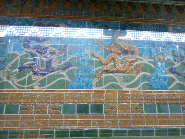 福井の勝山の越前大仏に行きました。境内に入り回廊を歩いて、その奥にある建物です。建物内には中国の第一号の国宝を模倣した「九龍の壁」がありました。8263枚の陶板を使ったというカラフルな壁は、なかなかの大きさできれいでした。