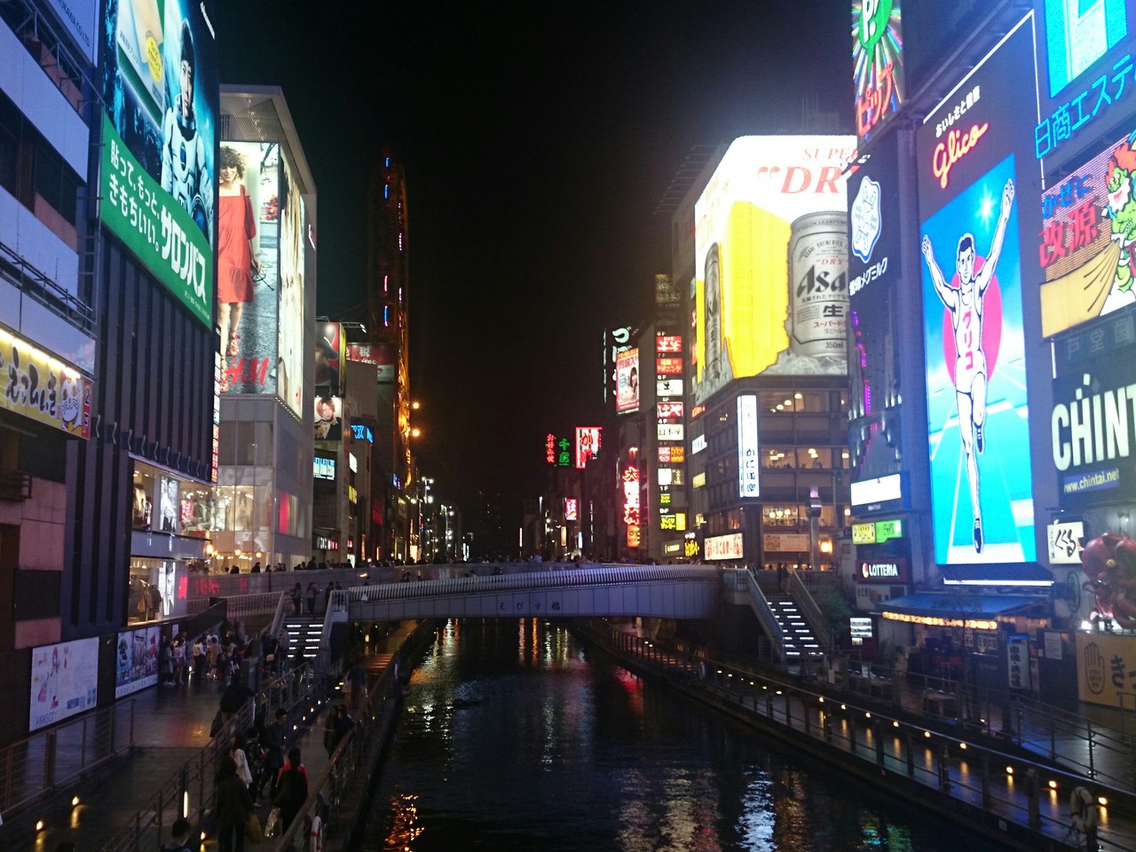 道頓堀川に沿って整備されている遊歩道です。川のすぐそばを歩けます。22時近くに通りかかりましたが、けっこう人通りは多かったです(橋の上ほどではないですが)。リバーウォークから直接出入りできるお店もいくつかあるようです。