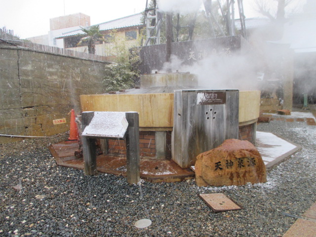 町を歩いていると、ゆげが見えて偶然見つけた源泉です。御所泉源のように、爆発しそうだという迫力はありません。でも、ほのかにグツグツと煮立っている様子は、いかにものどかな温泉街という感じで心が休まります。