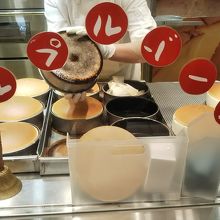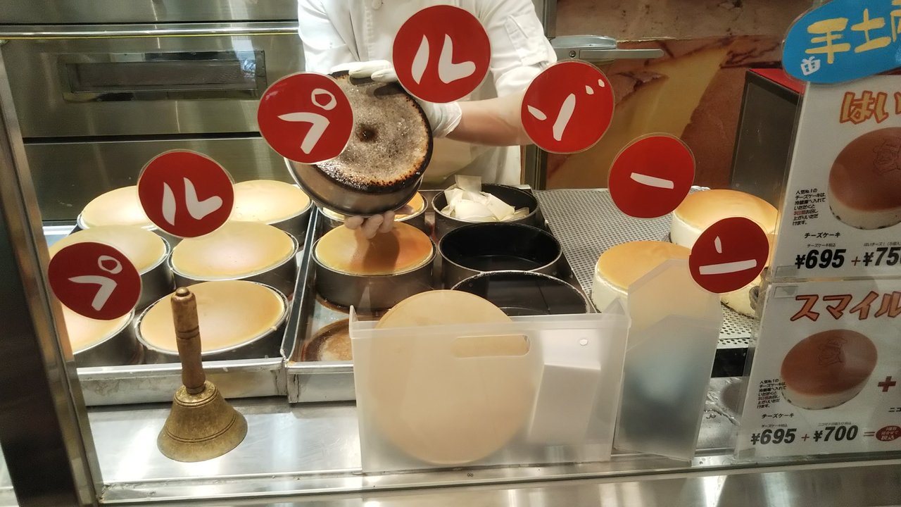 焼き立てのチーズケーキが並んでいる場所はプルプルゾーンというそうです。