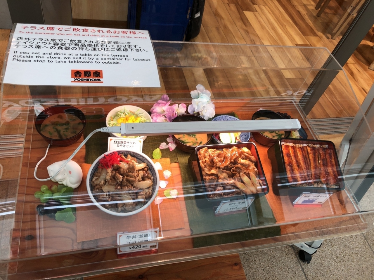 羽田空港国際線ターミナルにある吉野家です。『はねだ日本橋』の奥の方にあり、結構歩きますが、早くて安いので、海外からの帰国時はいつも利用しています。座席数はそんなに多くありませんが、お店の前にも自由に使えるテーブルがあるので、テイクアクトにすれば問題ないと思います。