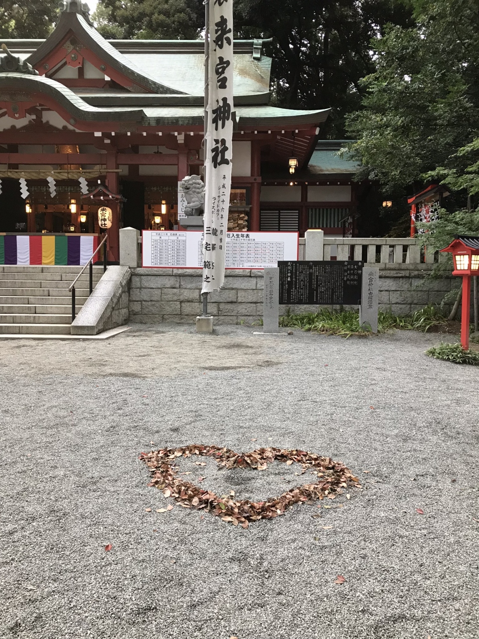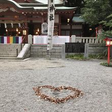 縁結びの神社でもあるので、落ち葉がハートマークに飾られていたり、SNSにUPしたくなるような神社になっている。