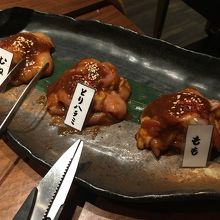 大阪名物では無いですが、牛タンと鶏肉がメインとなっており、鶏肉は自分で焼いて頂きます。味噌味もおいしいですが、塩も選ぶ事ができます。しめにはテールラーメンを頂きましたが、出汁とキノコの相性もよくスープはおいしかったです。