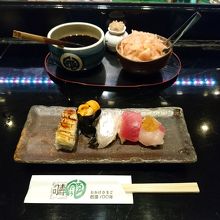 ランチにて利用致しました。つまみ寿司は初めて頂きました。具材は厚みがあり、美味しかったです。一人でしたので、じょうまぜを何度か頂きました。ネタも毎回異なるので良かったです。テーブル席もあるので、おすすめです。