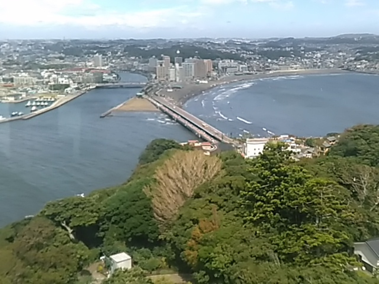 藤沢市片瀬海岸と江ノ島を結ぶ橋で、左側が人道橋の江ノ島弁天橋(橋長389m)です。最初の橋は明治24年に作られました。それまでは、潮が満ちてくると、船か人足の背負いでした。右側が車道橋の江ノ島大橋(橋長324m )です。東京オリンピックの時に、ヨット競技場に行くために作られました。二つの橋は、島と本土を結ぶ橋というだけでなく、今では、江の島とセットで一つの風景になっている、なくてはならない橋です。