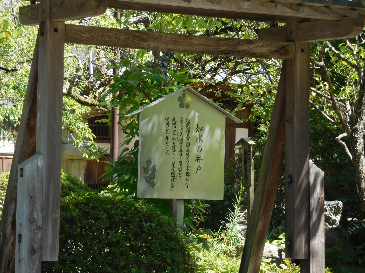 太宰府天満宮から九州国立博物館方面へと向かう途中、宝物殿の近くにありました。如水=黒田官兵衛が草庵で隠棲していた時に実際に使っていた井戸のようで、こんな場所で歴史の垣間見れるとは思わなかったので、意外な感じでした。この辺りにはあまり観光客はいなく、とても落ち着いた雰囲気の場所でした。