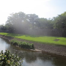 お堀にはたくさんのコイが泳いでおり、ところどころに休憩用のベンチとビュースポットの突き出した部分があって、のんびりと景色を眺めることができました。