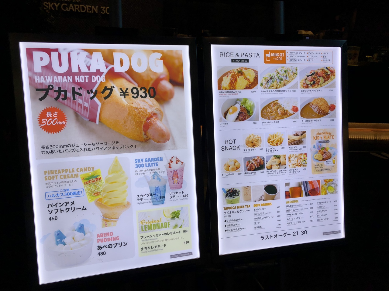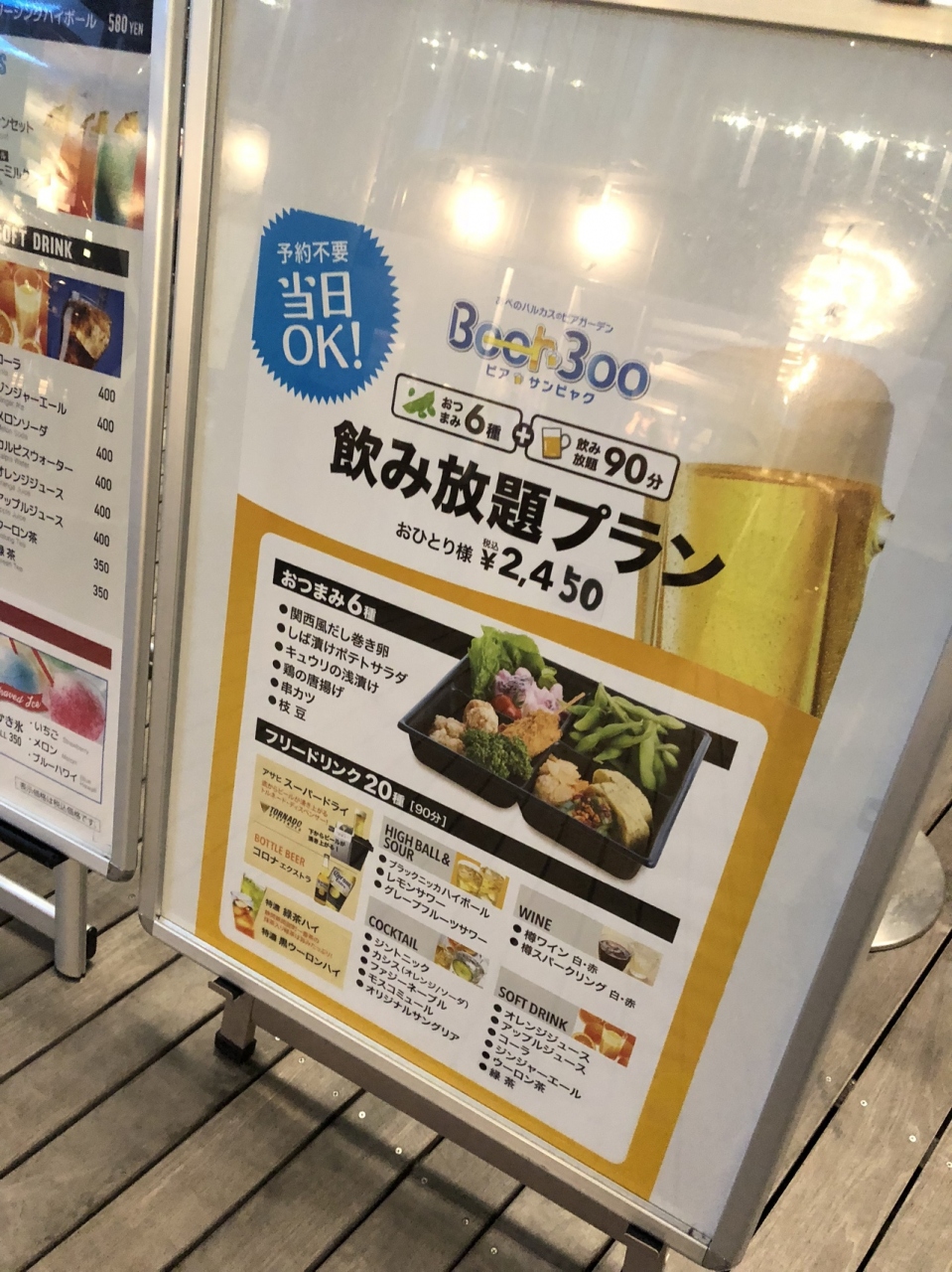 あべのハルカスの16階で入場料を払い、超高速エレベーターで60階まであがり、そこからエスカレーターで降りて行くとおしゃれなカフェスペースやオープンデッキのイートインスペースがあります。夏はビアガーデンの雰囲気ですごく素敵です。