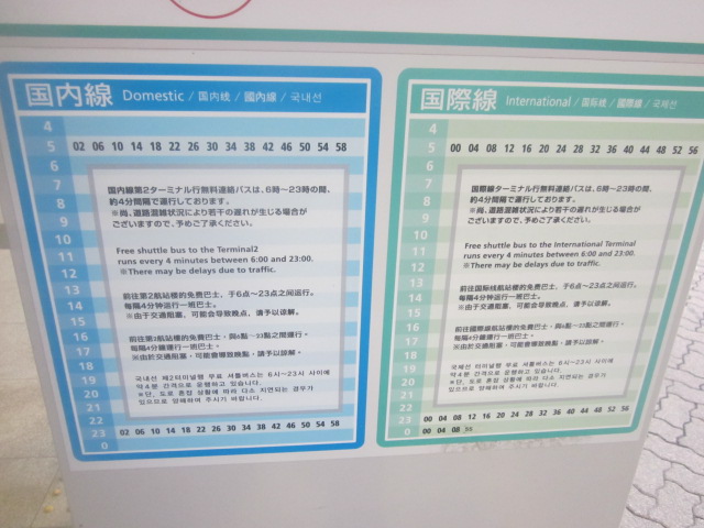 羽田空港の国際線Tと国内線T、或いは国内線T相互を移動する際にお世話になるバスですが、今回は、深夜に国内線Tを発車するバス便(国内線T1発0時55分)というのを見つけました。通常このバスの運行時間は、5時~24時を謳っていますので、このバス便の所の箇所のみ、時刻が上貼りされて表記された感じで、最近できた便なのかと思いますが、この便があると、深夜国内線T到着でも”歩かずに”国際線Tに移動できそうですね。