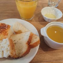 ドリンクバーとパン食べ放題があります