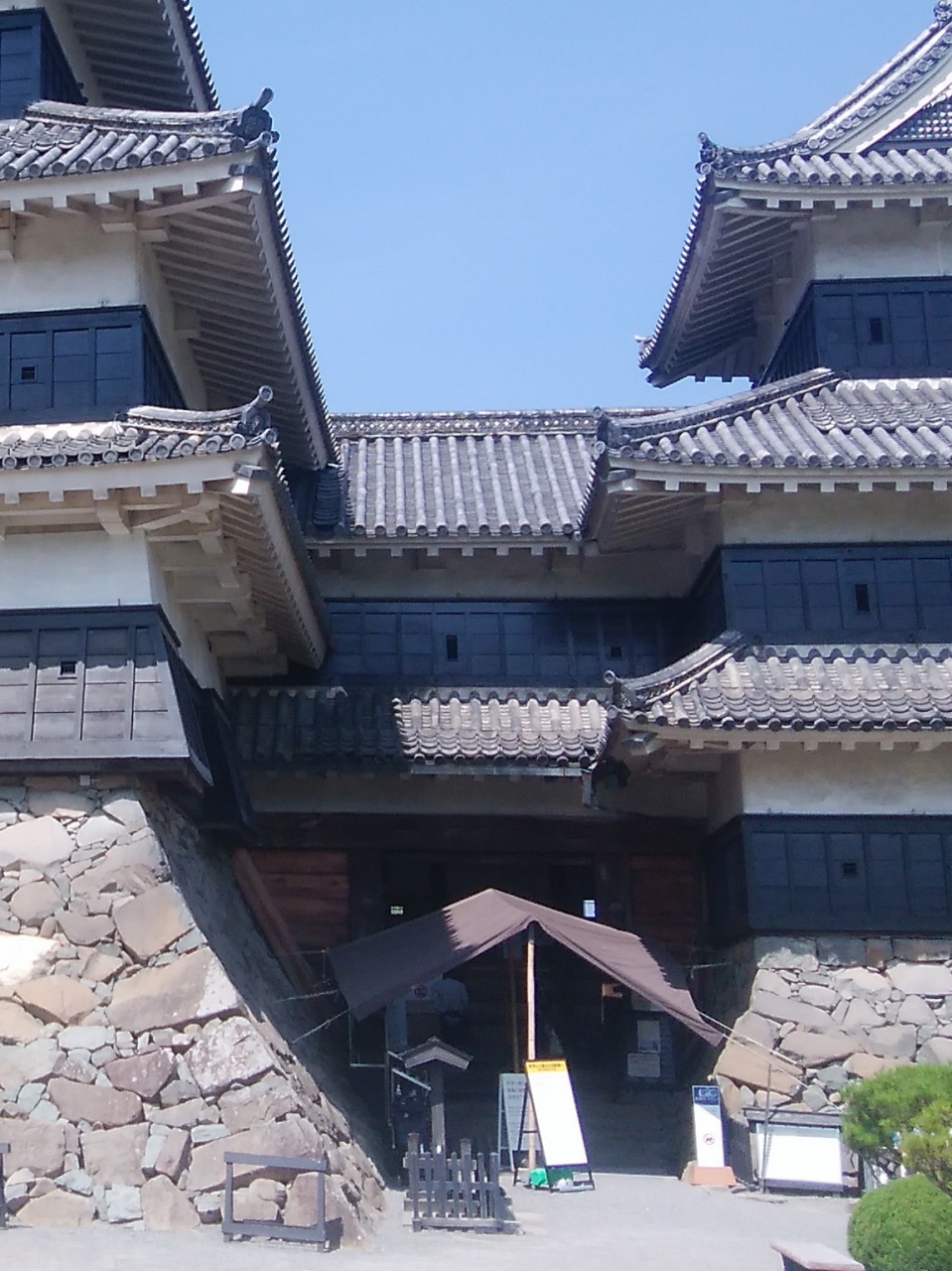 堅牢な石垣と天守に挟まれた、見るからに頑丈そうな建造物となっています。