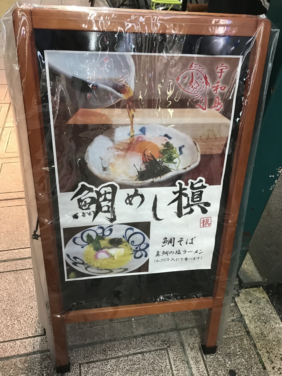 今日は残念ながら鯛そば(鯛のだし汁と鶏ガラのラーメン)が売り切れだそうで、鯛めしのセット、じゃこ天、みかん酎ハイを注文。