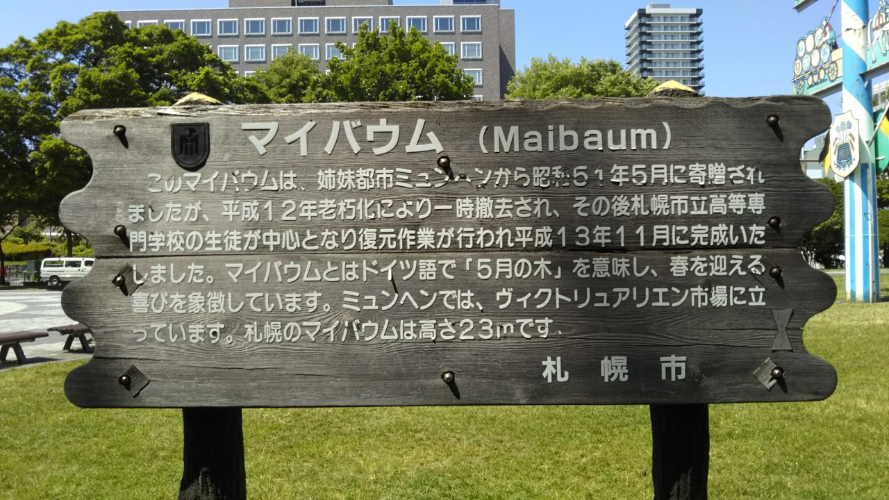 大通公園西11丁目にある『マイバウム』は姉妹都市ミュンヘン市から贈られたモニュメントです。