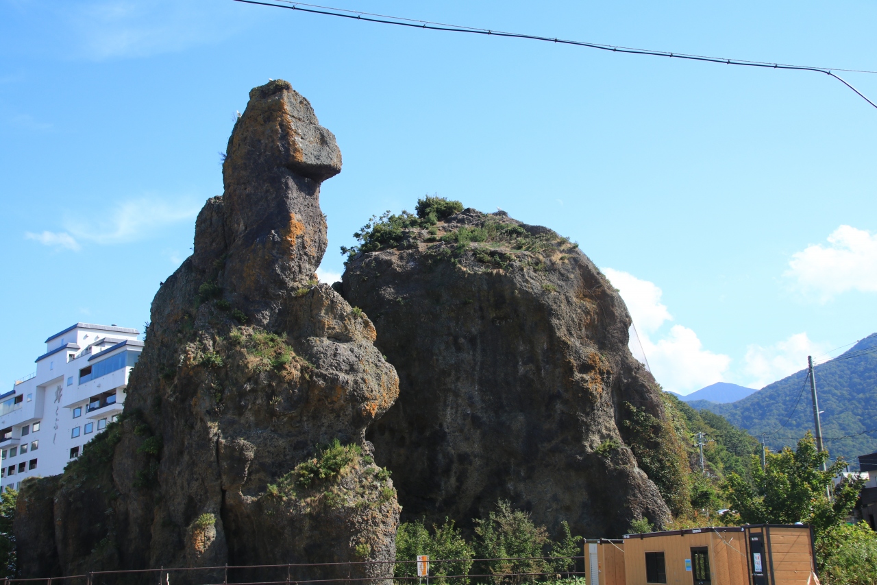 町からオロンコ岩に歩いていく途中でもあり、目にする機会は多いと思いますが、形を見ると確かにゴジラです。周囲は崩落の危険があるということで、近寄ることはできませんが、遠くから見ないと形がわかりませんので、それでよいでしょう。