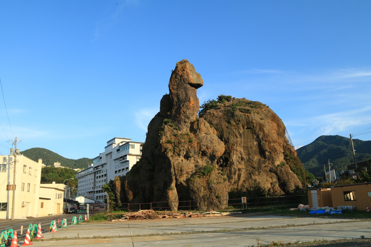 ウトロ港のすぐそばにある奇岩です。知床観光クルーズ船でゴジラ岩観光を利用しましたが、その名前の下になっているのが、この岩の麓に事務所があるからです。