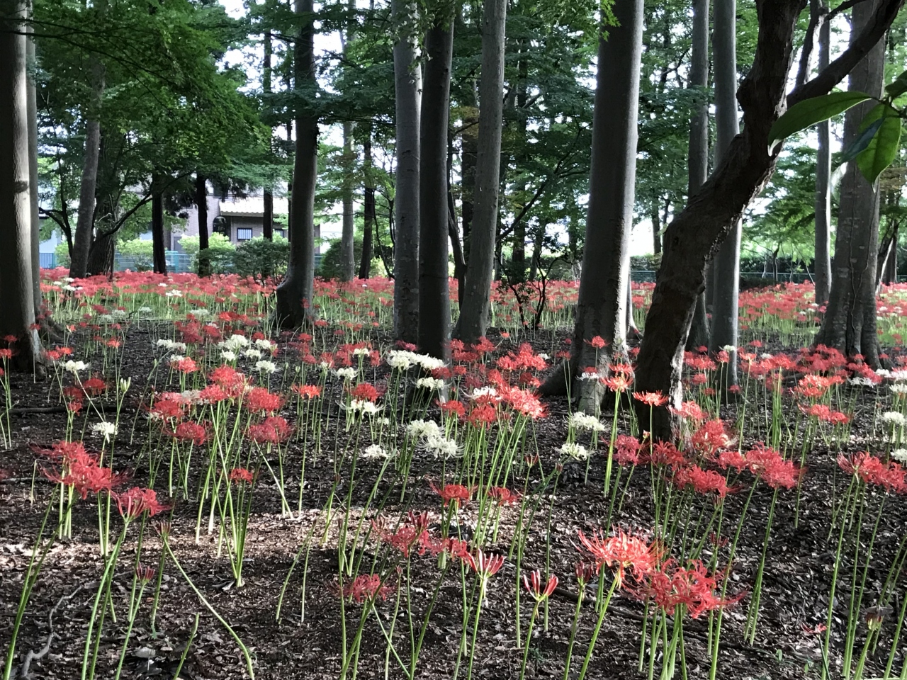 新京成線常盤平駅から歩いて10分 ミニ巾着田といわれる彼岸花の隠れた名所 お寺の山門脇や雑木林の一面に彼岸花が咲いているのは幻想的です。 金ヶ作公園の近くです。見に行った時はまだ7分咲きでしたが写真を撮りにくる人達も多いです。駐車場もあって無料で見られるのがうれしいです。