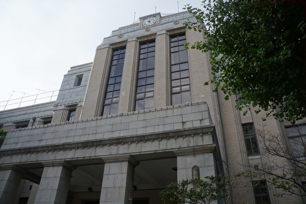 旧逓信省簡易保険局の建物は、綱の手引坂の中ほど。明るい街の一角に人けのない大きな建物がぬっと建っている感じ。現在の建物は、関東大震災後の復興建築。大林組の手により昭和5年に竣工したもの。戦争の足音がし出した昭和の初期。余計な意匠を省いたデザインがちょっと時代を匂わせます。