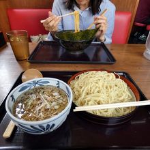 この日私が食べた肉つけ麺(¥680-)は追加料金なしで麺を大盛りにしてくれます。