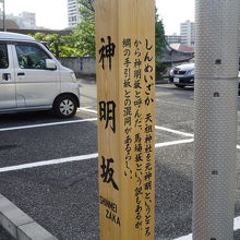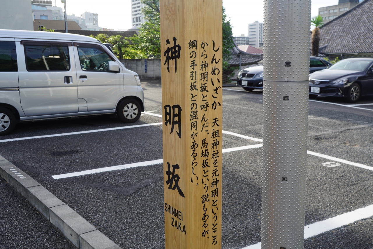 神明坂は、オーストラリア大使館の辺りから、綱の手引坂の脇に入って元神明宮の方に続く坂。始めは少し急ですが、その後はなだらかな坂となって元神明宮に至ります。綱の手引坂から比べるとずっと細い通りになるので、そのギャップがけっこうあると思います。