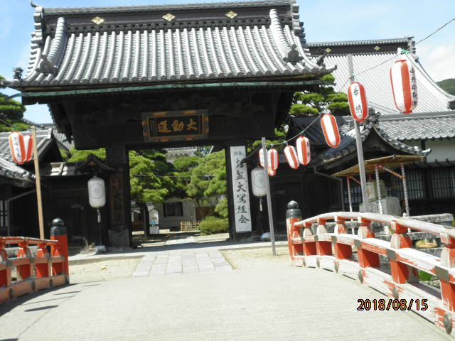 善光寺三門手前、きれいな蓮が群生している放生池を渡り、大勧進に入ります。「御数珠頂戴」の儀式の時間が近かったため、たくさんの人が貫主が出てくるのを待っていて、警備員もいました。この大勧進の住職は、善光寺の住職も兼ねているそうです。
