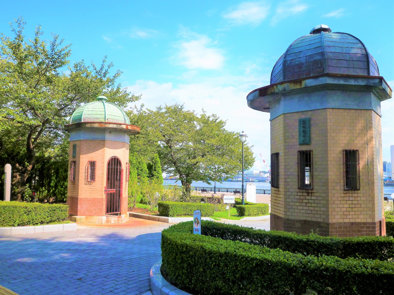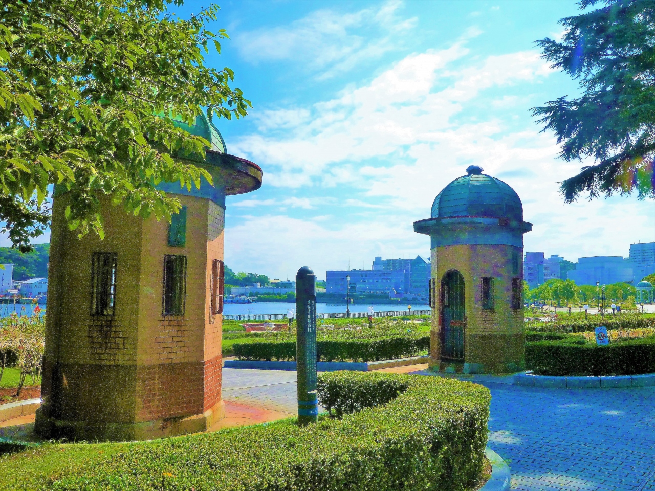 バラ園のヴェルニー公園に行きましたが入口が[旧横須賀軍港逸見波止場衛門]とは;確かに石碑には`逸見波止場衛門`と(^^!) 丸い屋根を八角形の窓付き門(年月が経っている)が左右の両方にありました。 なるほど今は公園ですが昔は軍港堤だったのですね…一対の門/八角形の門で重要性が!