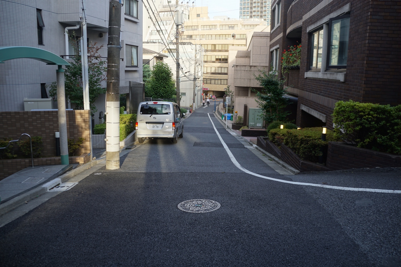 潮見坂は、坂の上から芝浦の海辺一帯を見渡し、潮の干満を知ることができたため、この名前が付いたと説明がありました。坂の上には学校があって、時間によってはとても賑やか。ただ、今では海は全く見えないので、当時を想像してみるしかありません。