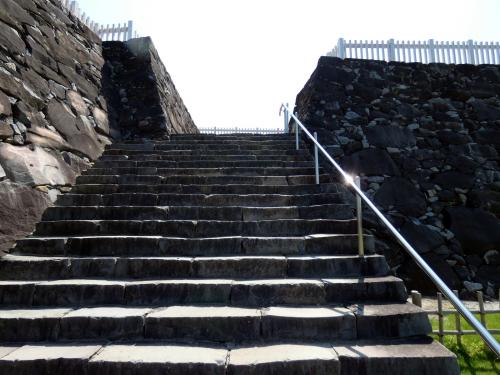 JR甲府駅南口から東に300mほどの、JR中央線沿いに整備された舞鶴城公園内に甲府城 天守台があります。