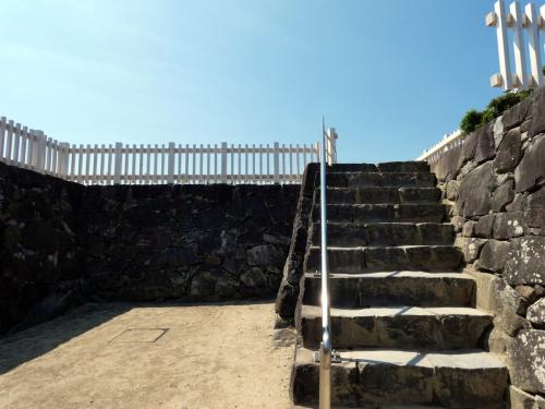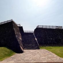 天守台は1590年代に築城された当時のままの野面積(のづらづ)みの石垣が現存しています。