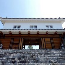 甲府城本丸の南側に建築された2階建ての櫓門で、江戸時代初期に建てられ、明治初年に取り壊されましたものが、約140年ぶりに復元整備されています。